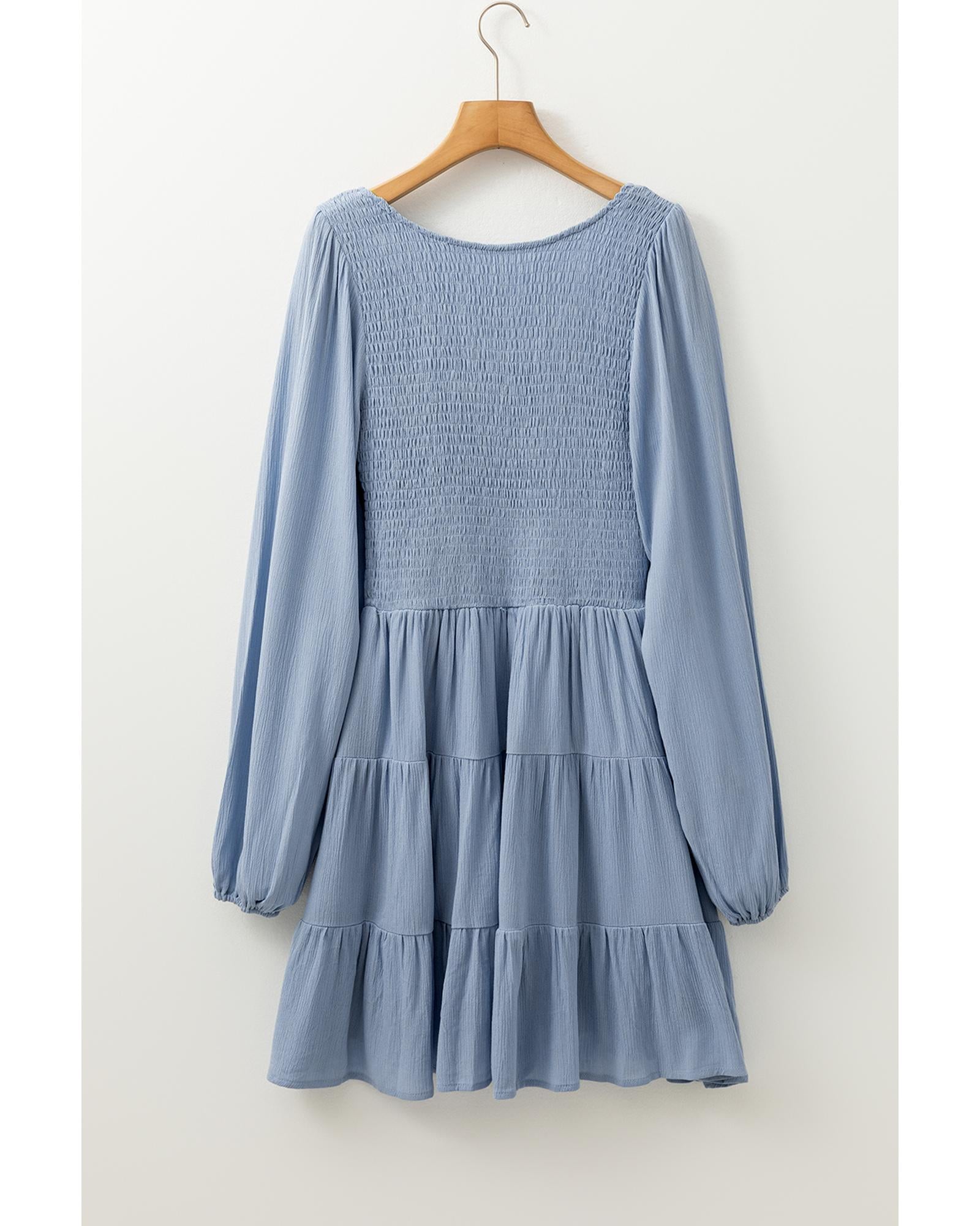 Ashleigh Blue Long Sleeve V Neck Smocked Tiered Mini Dress - XL