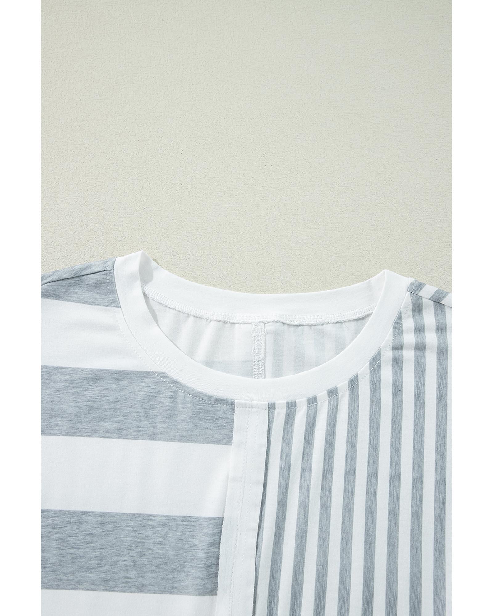 Azura Exchange Gray Stripe Mixed Printed Short Sleeve Shift Mini T Shirt Dress - L