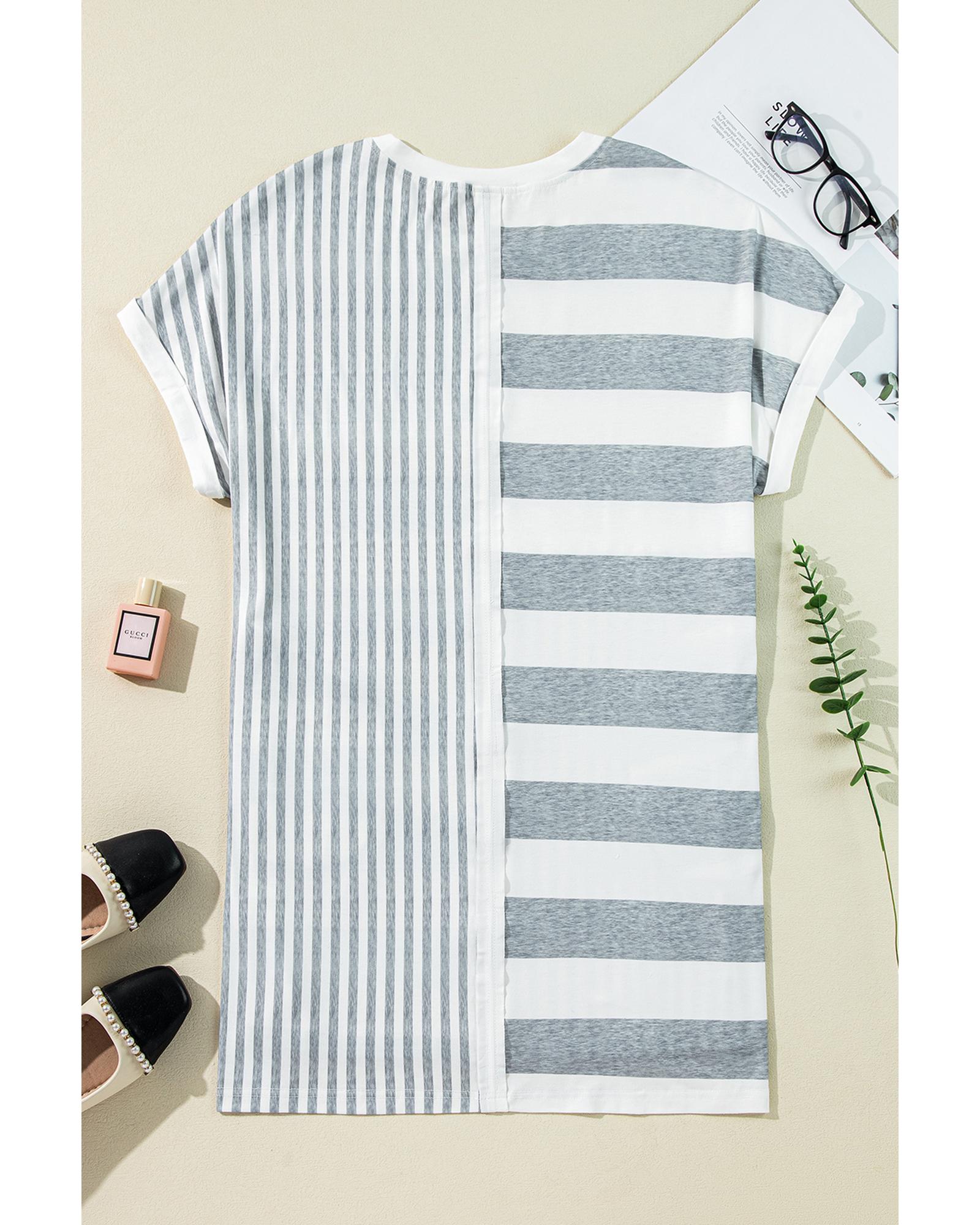 Azura Exchange Gray Stripe Mixed Printed Short Sleeve Shift Mini T Shirt Dress - XL