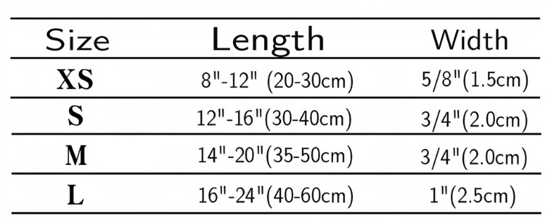 - Collar Sizes: Available in various adjustable sizes to fit small, medium, and large breeds. Please check the detailed sizing chart on the product page to ensure a perfect fit for your pet.